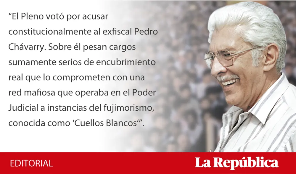 Anoche, el Pleno votó por acusar constitucionalmente al exfiscal Pedro Chávarry. Sobre él pesan cargos sumamente serios de encubrimiento real que lo comprometen con una red mafiosa que operaba en el Poder Judicial a instancias del fujimorismo, conocida como ‘Cuellos Blancos’. Sin embargo, al momento de ponerse en consideración la inhabilitación por 10 años, no se alcanzaron los 55 votos necesarios y se mandó al archivo el pedido.