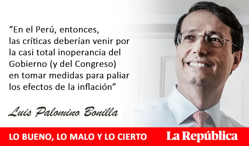 “En el Perú, entonces, las críticas deberían venir por la casi total inoperancia del Gobierno (y del Congreso) en tomar medidas para paliar los efectos de la inflación”.