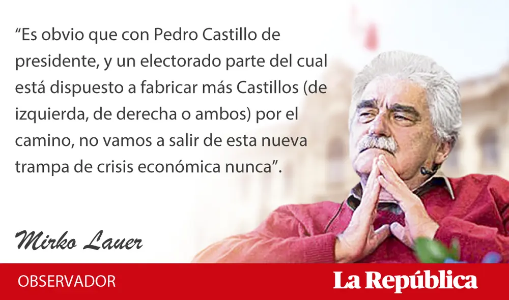 “Es obvio que con Pedro Castillo de presidente, y un electorado parte del cual está dispuesto a fabricar más Castillos (de izquierda, de derecha o ambos) por el camino, no vamos a salir de esta nueva trampa de crisis económica nunca”.