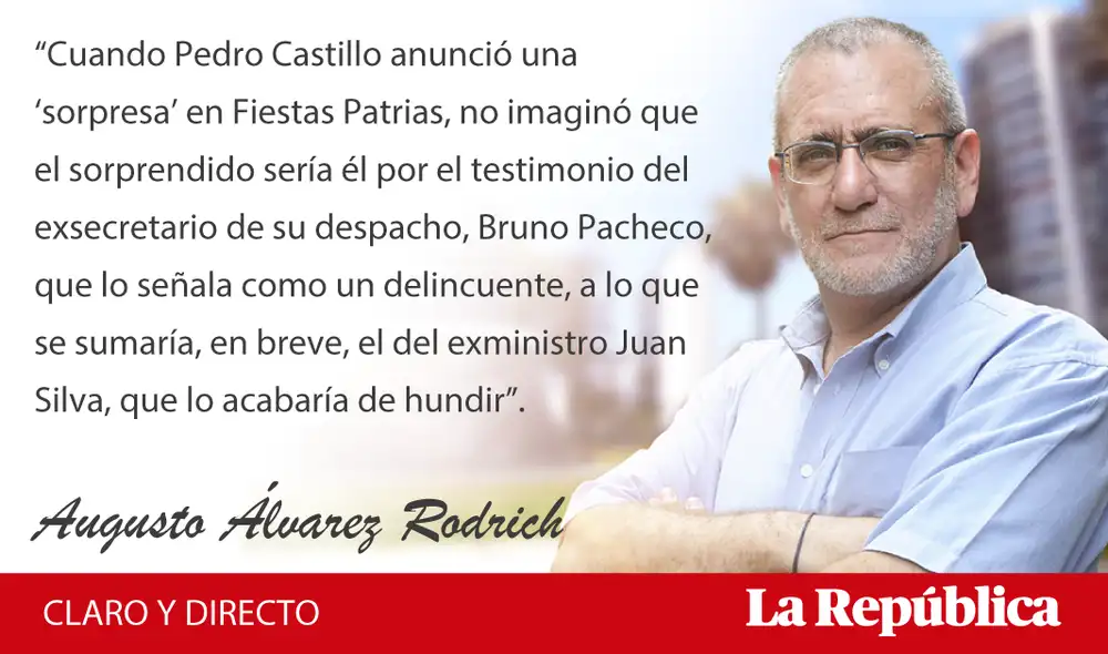 Cuando Pedro Castillo anunció una ‘sorpresa’ en fiestas patrias, no imaginó que el sorprendido sería él por el testimonio del exsecretario de su despacho, Bruno Pacheco, que lo señala como un delincuente, a lo que se sumaría, en breve, el del exministro Juan Silva, que lo acabaría de hundir.