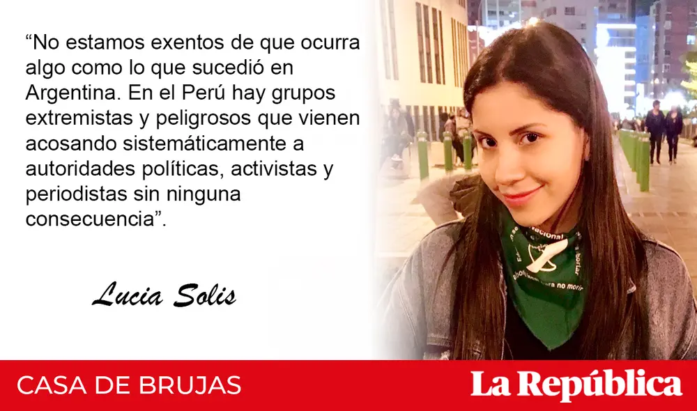 “No estamos exentos de que ocurra algo como lo que sucedió en Argentina. En el Perú hay grupos extremistas y peligrosos que vienen acosando sistemáticamente a autoridades políticas, activistas y periodistas sin ninguna consecuencia”.