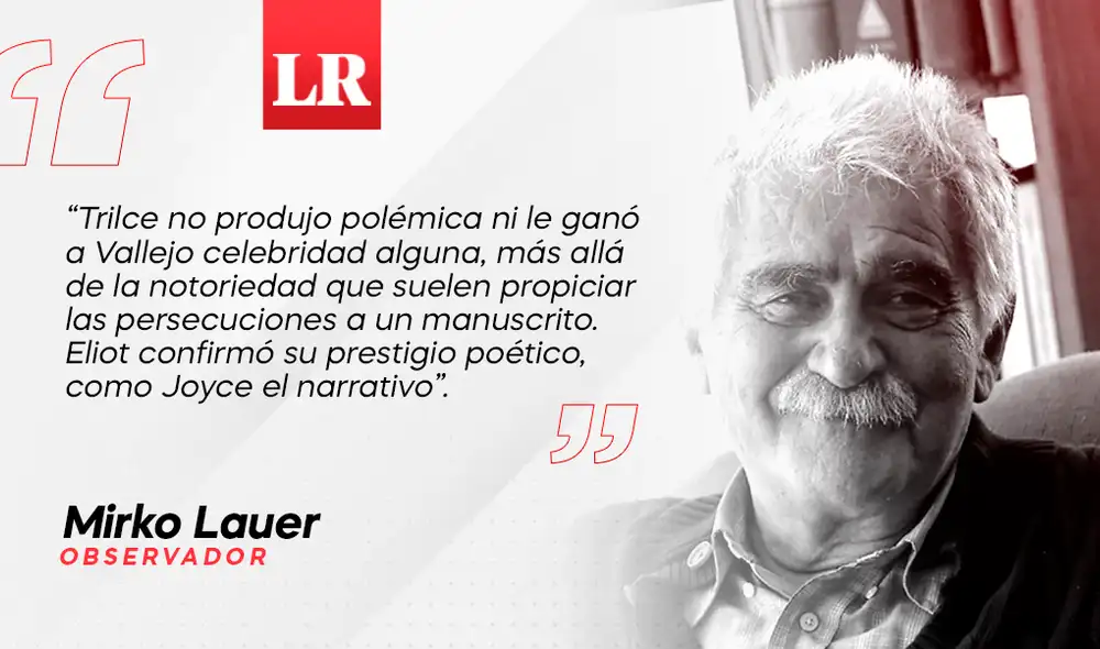 “Trilce no produjo polémica ni le ganó a Vallejo celebridad alguna, más allá de la notoriedad que suelen propiciar las persecuciones a un manuscrito. Eliot confirmó su prestigio poético, como Joyce el narrativo”.