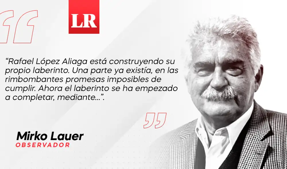 “Rafael López Aliaga está construyendo su propio laberinto. Una parte ya existía, en las rimbombantes promesas imposibles de cumplir. Ahora el laberinto se ha empezado a completar, mediante...”