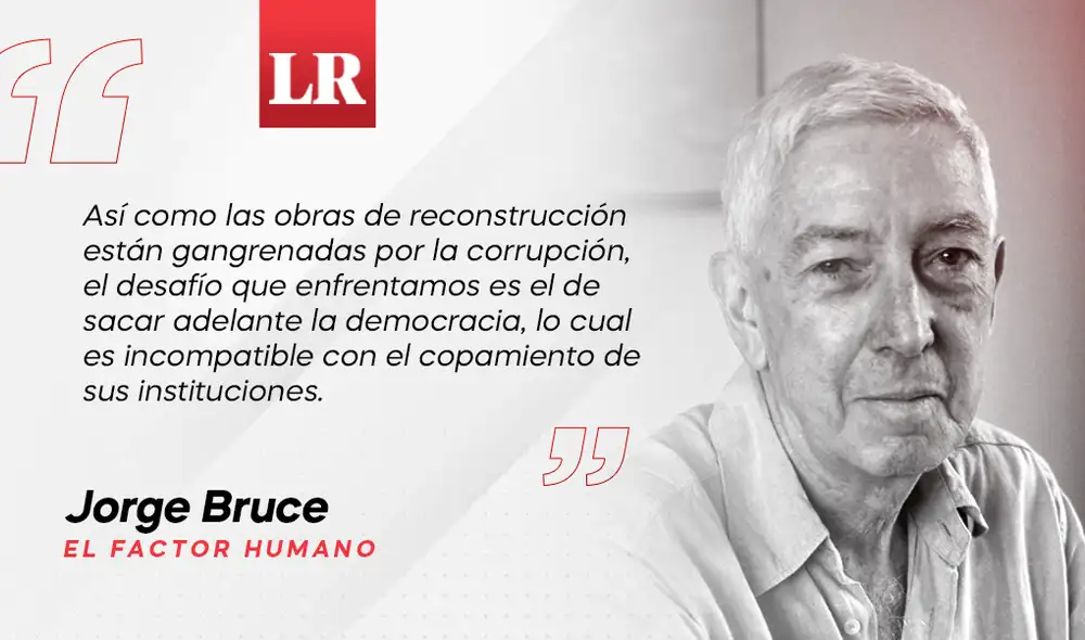 Tampoco la rapiña del Congreso, cuyo empeño en capturar el Estado supera la torpeza de Castillo y es obvio que su modelo es el de Fujimori y Montesinos. ¿Tenemos que resignarnos porque no se ven alternativas en el horizonte ceñudo de huaicos y catástrofes? ¿Debemos permitir que capturen los organismos electorales, por el miedo a unas elecciones en donde se repita el desastre de Castillo? Así como las obras de reconstrucción están gangrenadas por la corrupción, el desafío que enfrentamos es el de sacar adelante la democracia, lo cual es incompatible con el copamiento de sus instituciones.