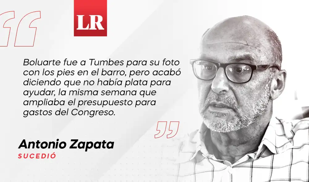 “Boluarte fue a Tumbes para su foto con los pies en el barro, pero acabó diciendo que no había plata para ayudar, la misma semana que ampliaba el presupuesto para gastos del Congreso”.