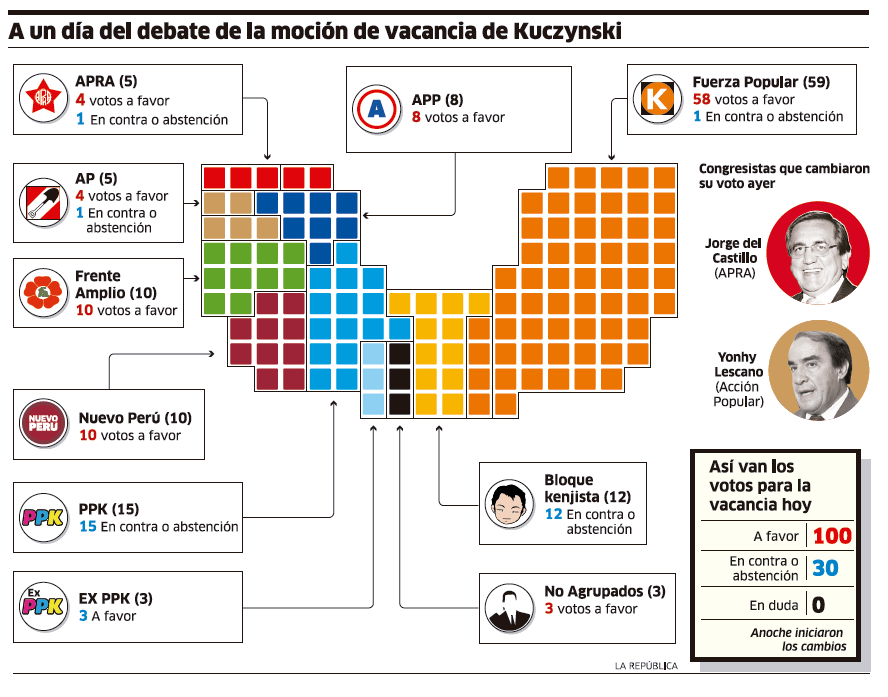 Habría cien votos para vacar al presidente Pedro Pablo Kuczynski