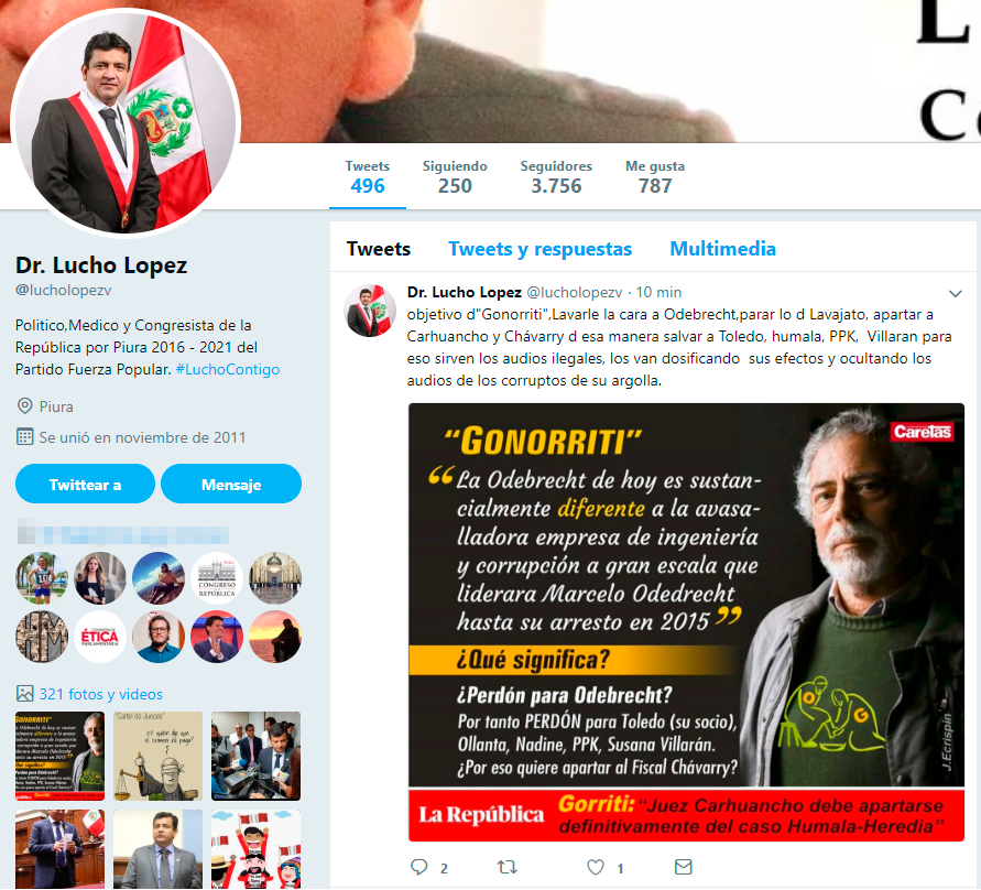 Congresista fujimorista ataca con vulgar vocabulario a Gustavo Gorriti por difundir audios