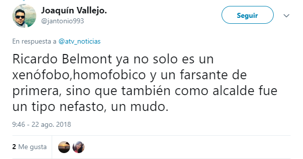 Twitter: Usuarios responden a Ricardo Belmont por comentarios xenófobos