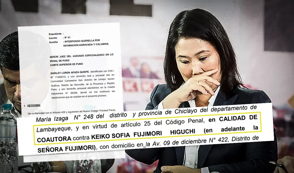 Shirley Apaza Quispe querella por difamación agravada a la candidata de Fuerza Popular. La denuncia incluye al financista David Chlimper Ackerman.