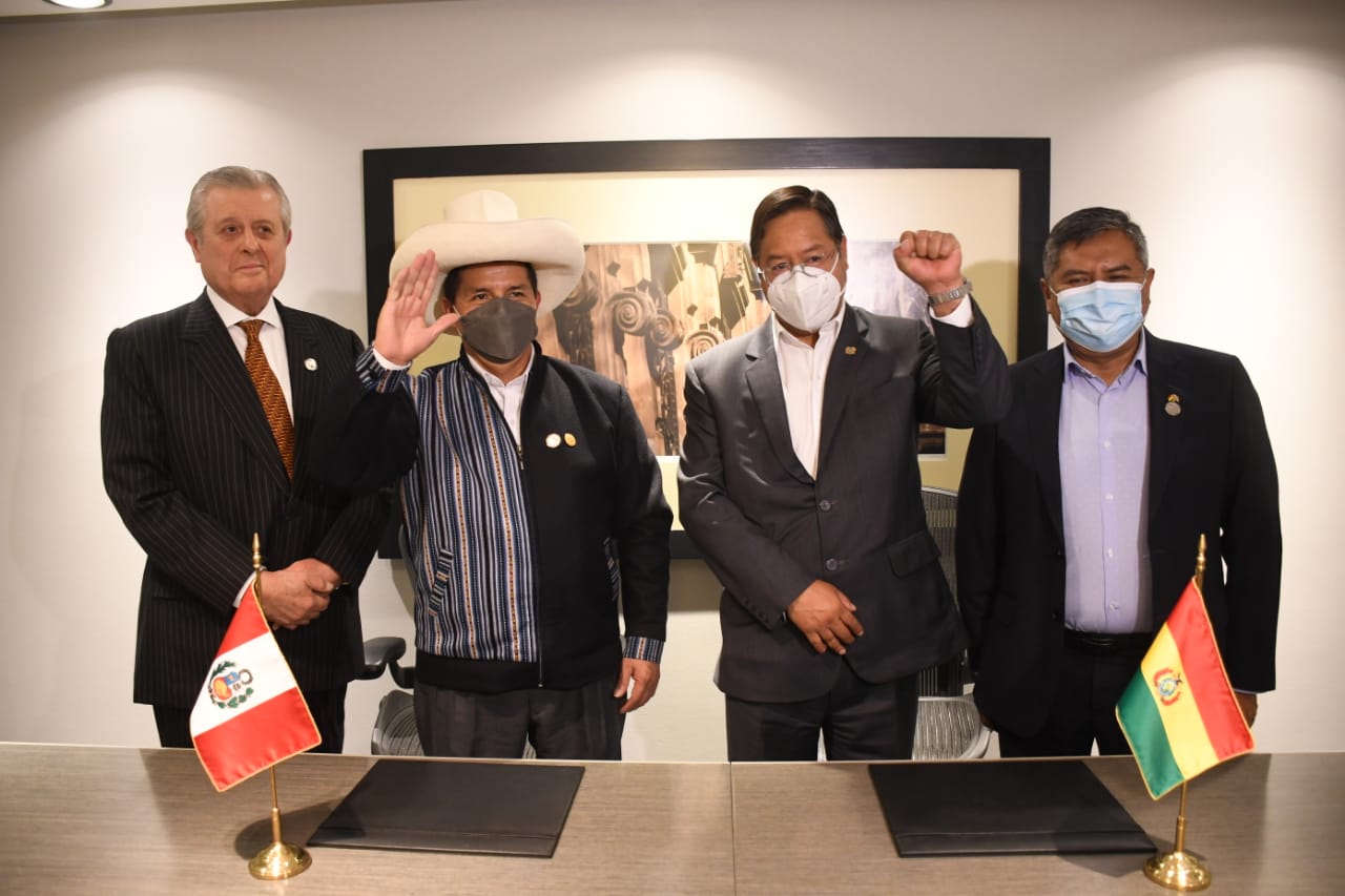 "En reunión con nuestro hermano presidente del Perú, PedroCastillo, avanzamos en las gestiones para llevar adelante el Gabinete Binacional Perú-Bolivia. Se trabajará en comisiones para definir detalles de este importante encuentro", manifestó en Twitter, Luis Arce, presidente boliviano. Foto: Twitter LuchoXBolivia