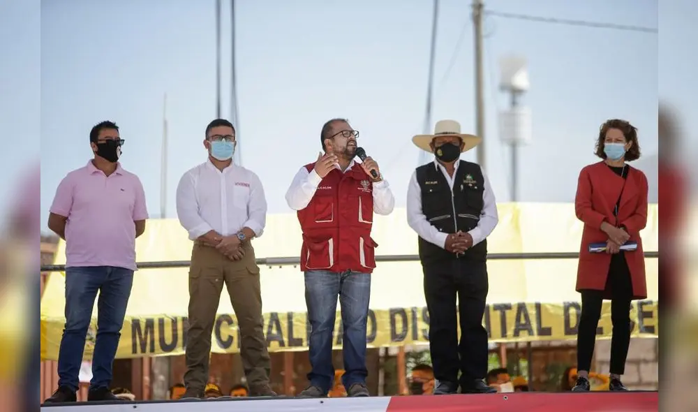 Candia participó este viernes 22 de octubre de la colocación de primera piedra para el proyecto de agua y desagüe en los sectores de Apipa y José Luis Bustamante y Rivero, en el distrito de Cerro Colorado. En la actividad también estuvo presente el ministro de Vivienda, Geiner Alvarado, que recibió el pedido de Candia para que le haga llegar al presidente Castillo nuevamente una invitación a dicha localidad.