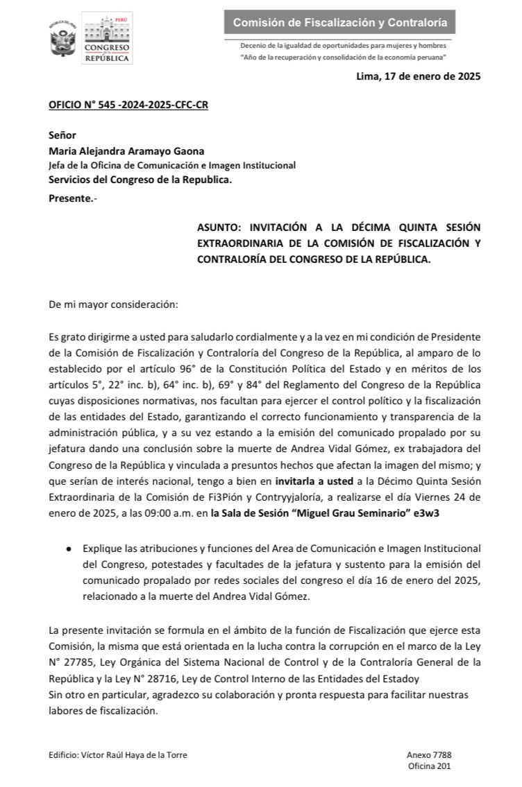 Citan a Alejandra Aramayo, jefa de comunicaciones del Congreso, tras publicación que tergiversó muerte de Andrea Vidal