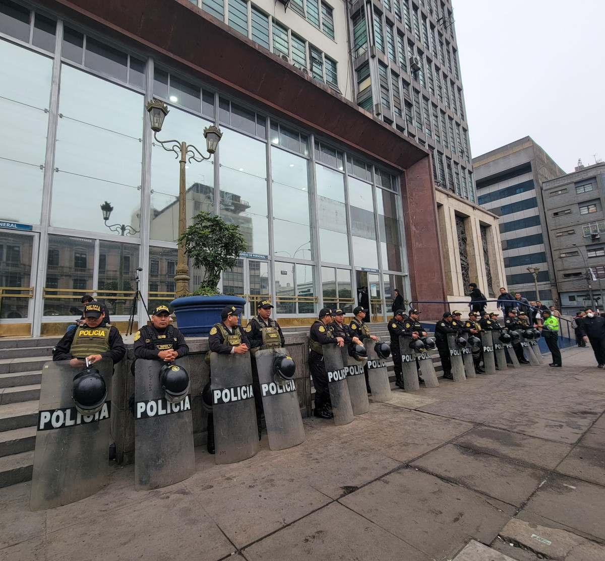 Tras la disposición del Poder Judicial de suspender por 24 meses a Patricia Benavides, se ha reportado mayor presencial policial en los exteriores de la Fiscalía.