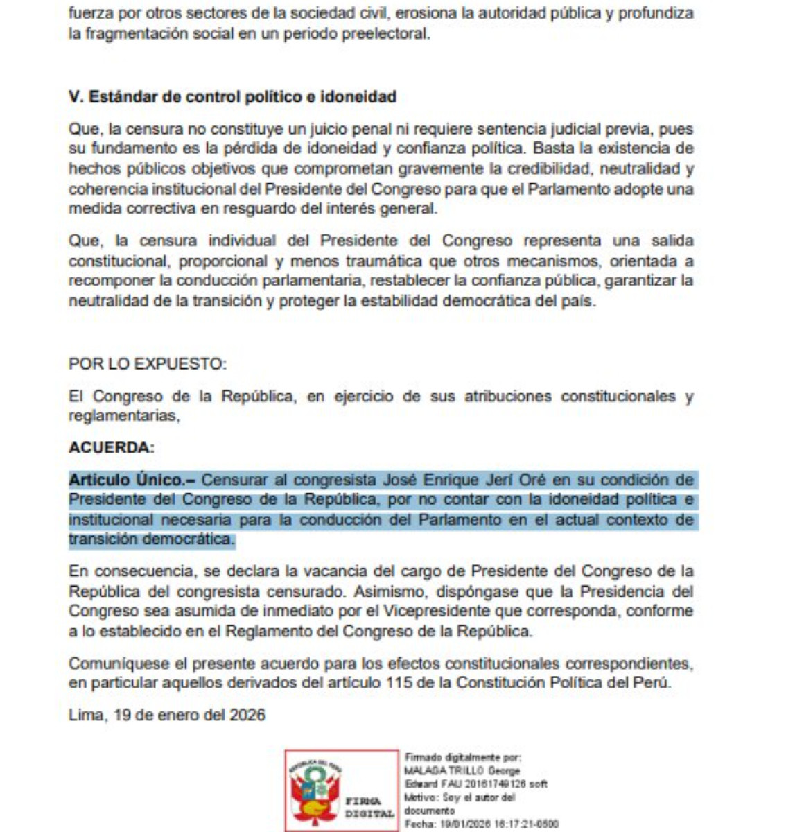 El parlamentario Edward Málaga impulsa una moción de censura contra José Jerí, tras la revelación de reuniones secretas con un empresario chino, realizadas fuera de la agenda oficial.