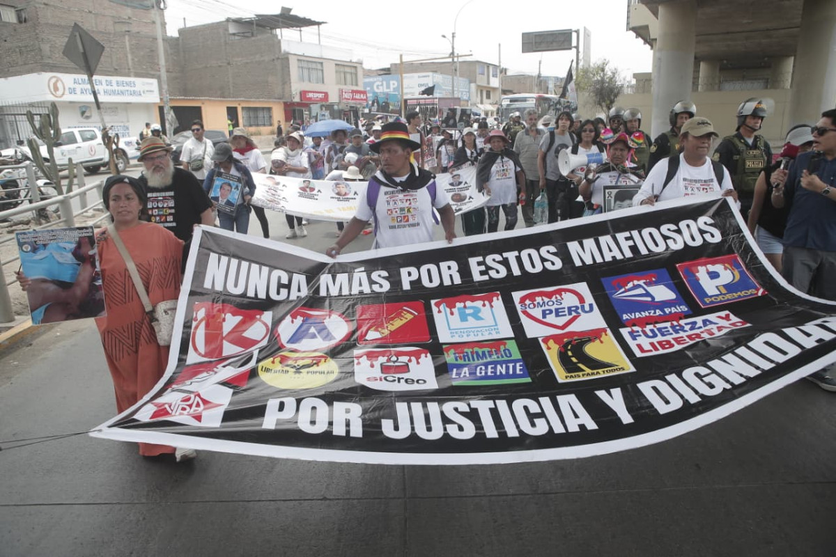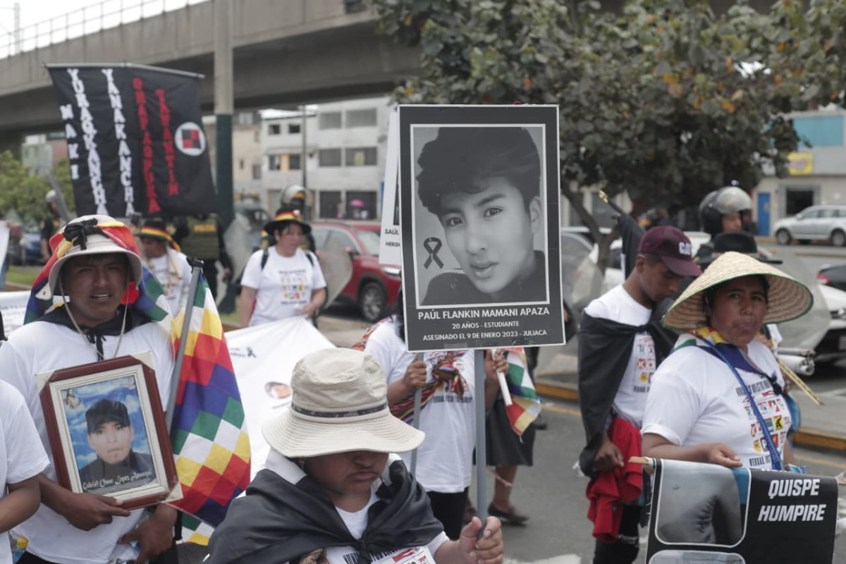 Los familiares de las personas asesinadas y heridas durante las protestas de 2022 y 2023 ya se encuentran en la Av. Aviación, cruce con el Jr. Andrea Vesalio, y se dirigen rumbo al Palacio de Justicia.