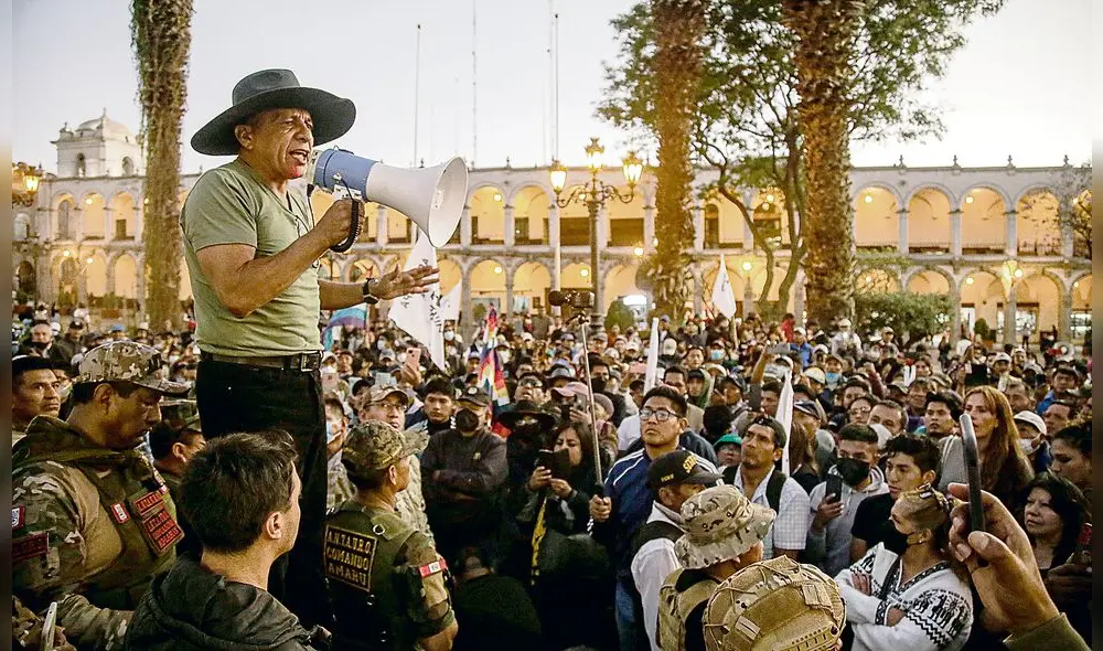 Visita. Líder etnocacerista encabezó mitin raleado en Arequipa. Dijo que tras 18 años de prisión “uno no sale a bromear”.
