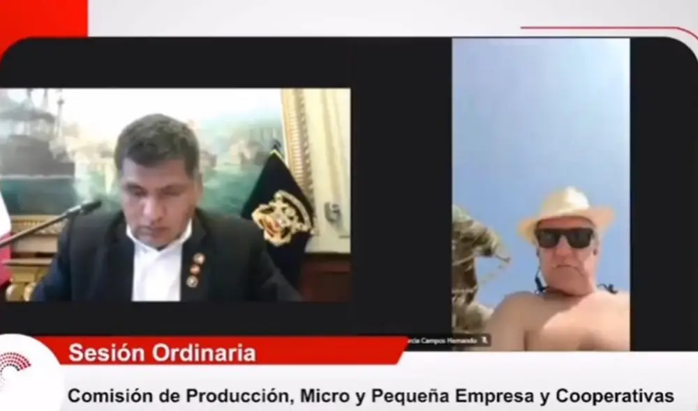 En un descuido, el congresista por Fuerza Popular Hernando Guerra García fue captado mientras tomaba unas vacaciones de verano. Esto ocurrió en la sesión de este lunes para la comisión de Producción del Congreso, encabezada por el legislador Bernardo Jaime Quito Sarmiento. Al advertir su error, apagó inmediatamente la cámara de su dispositivo.