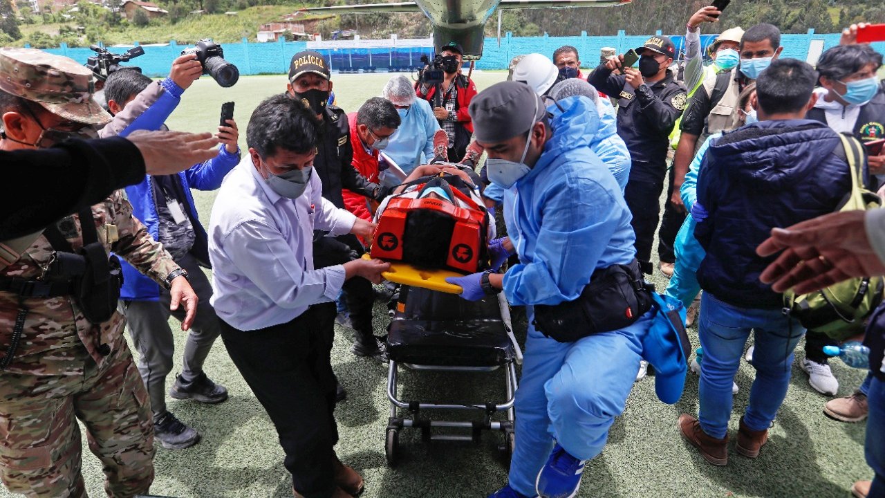 Luego de culminar sus actividades en la provincia de Pataz, el jefe de Estado, supervisó el traslado de un herido de Retamas hacia un hospital de Lima.