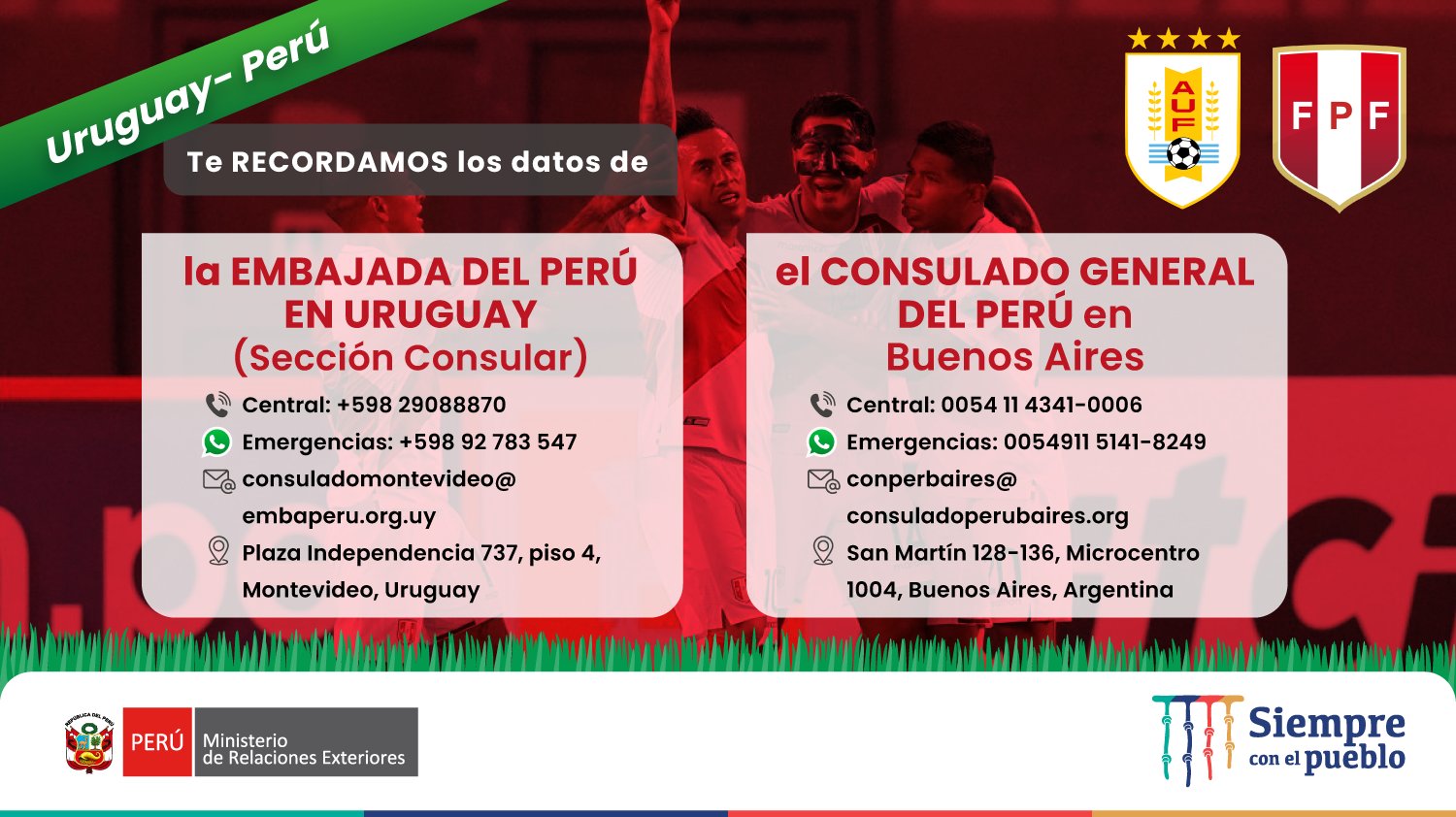 A través de sus redes sociales, la Cancillería remarcó los datos del Consulado y Embajada de Perú en Uruguay para todos los hinchas peruanos que se encuentren en tierra oriental por el partido de Elimintatorias a Qatar 2022.