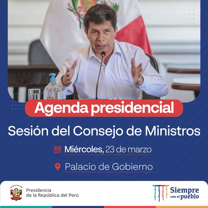 Con el mandatario Pedro Castillo liderando, culminó la sesión de Consejo de Ministros del míercoles 23 de marzo. En la reunión participó el jefe del PCM Aníbal Torres,