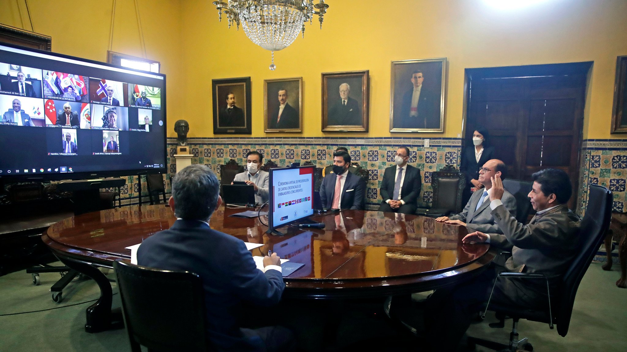 Desde la sede de la Cancillería peruana, el presidente Pedro Castillo liderará hoy la ceremonia de presentación de cartas credenciales de los embajadores concurrentes de diez países ante el Gobierno peruano.
