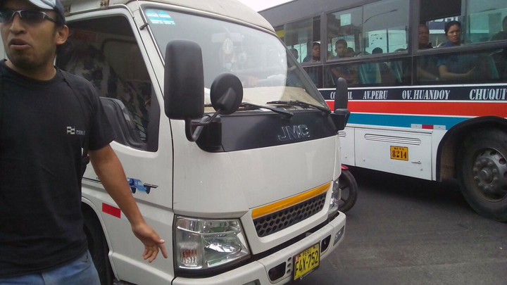 Vehículo de carga provoca accidente en plaza Dos de Mayo