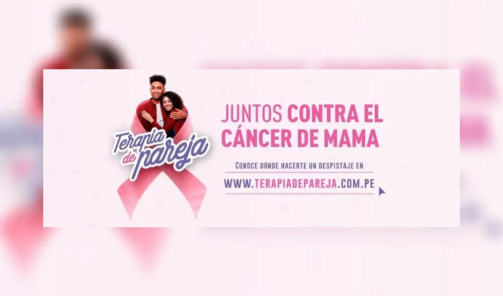 La campaña “Terapia de Pareja” cuenta con un spot publicitario en el que muestra cómo distintas parejas peruanas, juntas, separadas, jóvenes, adultas, diversas, reafirman su compromiso con una actividad que los une: acudir juntos a hacerse un despistaje de cáncer de mama. Con esta iniciativa se busca demostrar la importancia del apoyo de las parejas para enfrentar juntos este mal y que, con un chequeo a tiempo, juntos, pueden prevenir esta mortal enfermedad.
