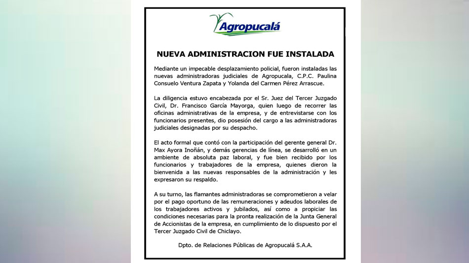 Chiclayo: instalan nueva administración en azucarera Pucalá