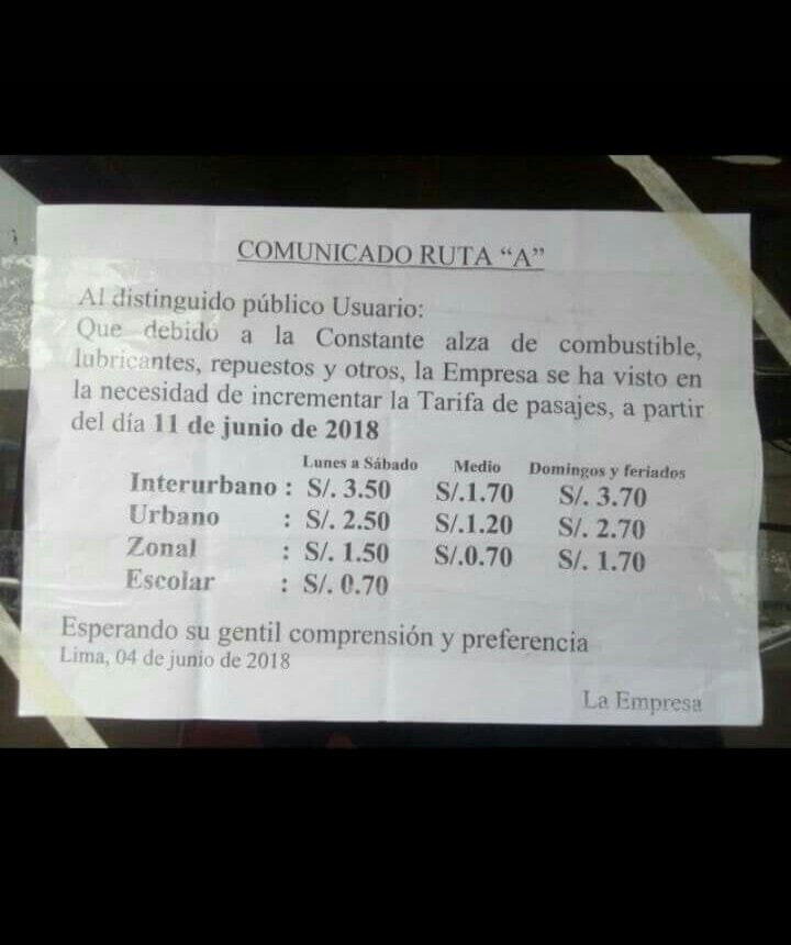 Empresa “Los Chinos” sube su pasaje ante aumento del precio del combustible