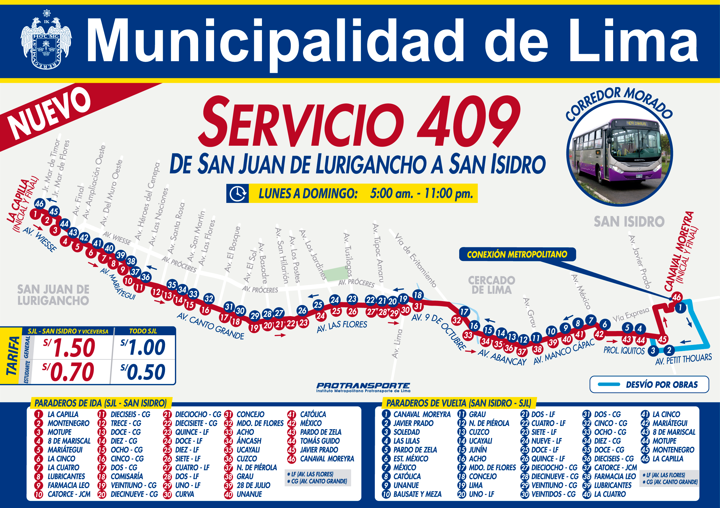 Corredor Morado: nuevo servicio 409 llegará hasta estación Canaval y Moreyra del Metropolitano [RUTA]