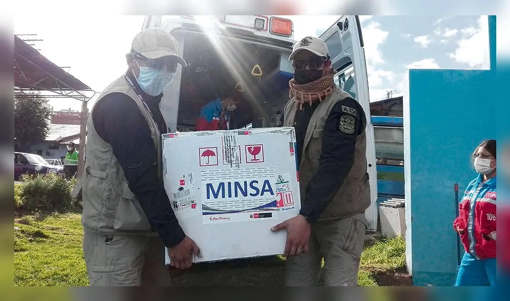 En un avión comercial llegó ayer a Cusco el primer lote con 1.170 dosis de la vacuna de Pfizer para empezar el proceso de vacunación a adultos mayores de 80 años del centro gerontológico de la Recoleta y beneficiarios del programa Pensión 65.