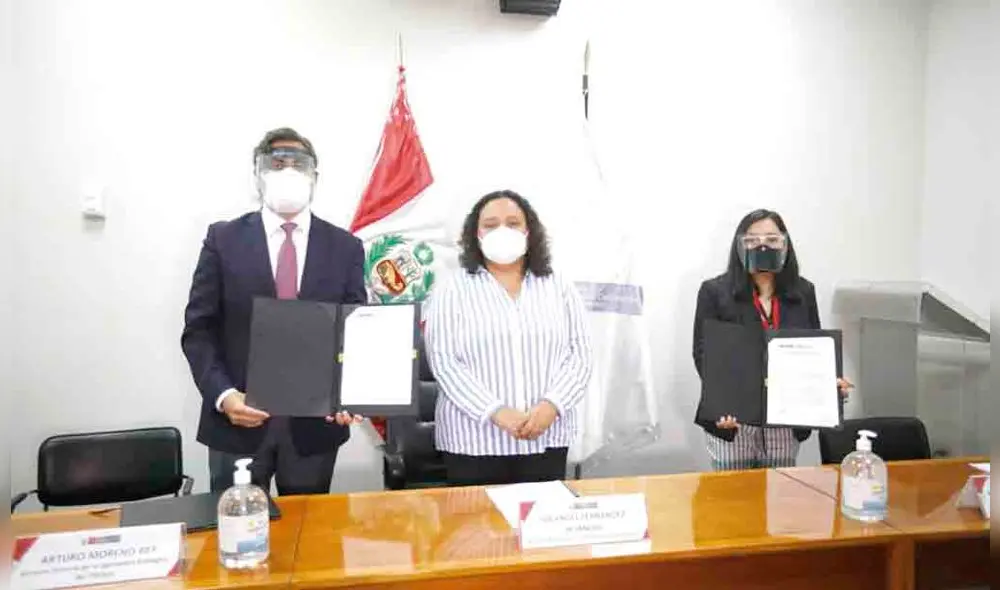 Acuerdo. Ministra de Vivienda Solangel Fernández firmó acta con representantes de concesionaria para iniciar obra. Primer componente comprende instalación de colectores en Puno.