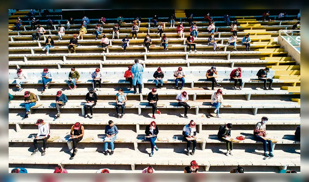 Los postulantes rindieron la evaluación en las graderías de las tribunas oriente y occidente del estadio de la Unsa. No obstante, pese a que la universidad entregó viseras, los jóvenes estuvieron expuestos al sol.