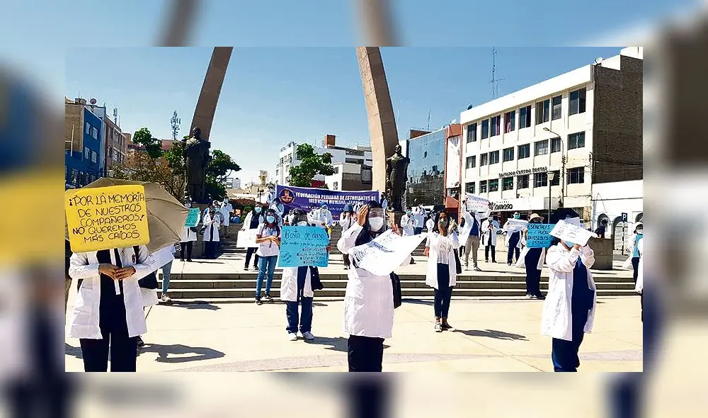 Los estudiantes que están en el séptimo año de la carrera deben acudir a los establecimientos de salud por 10 meses. En este caso irán al hospital Goyeneche y a los centros de salud I-3 y I-4. Ayer los realizaron una protesta en la Plaza de Armas.
