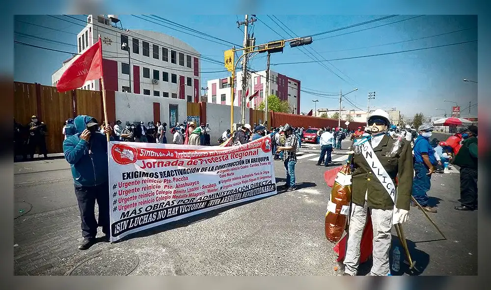 La protesta de los integrantes del Sindicato de Construcción Civil reveló que el Gobierno Regional de Arequipa (GRA) sigue con dificultades para encaminar varias obras. Los obreros del gremio acataron un paro por la falta de puestos de empleo y sacaron la promesa al gobernador regional Elmer Cáceres, de reactivarlas en las siguientes semanas. Calculan que son 6 mil obreros desempleados.