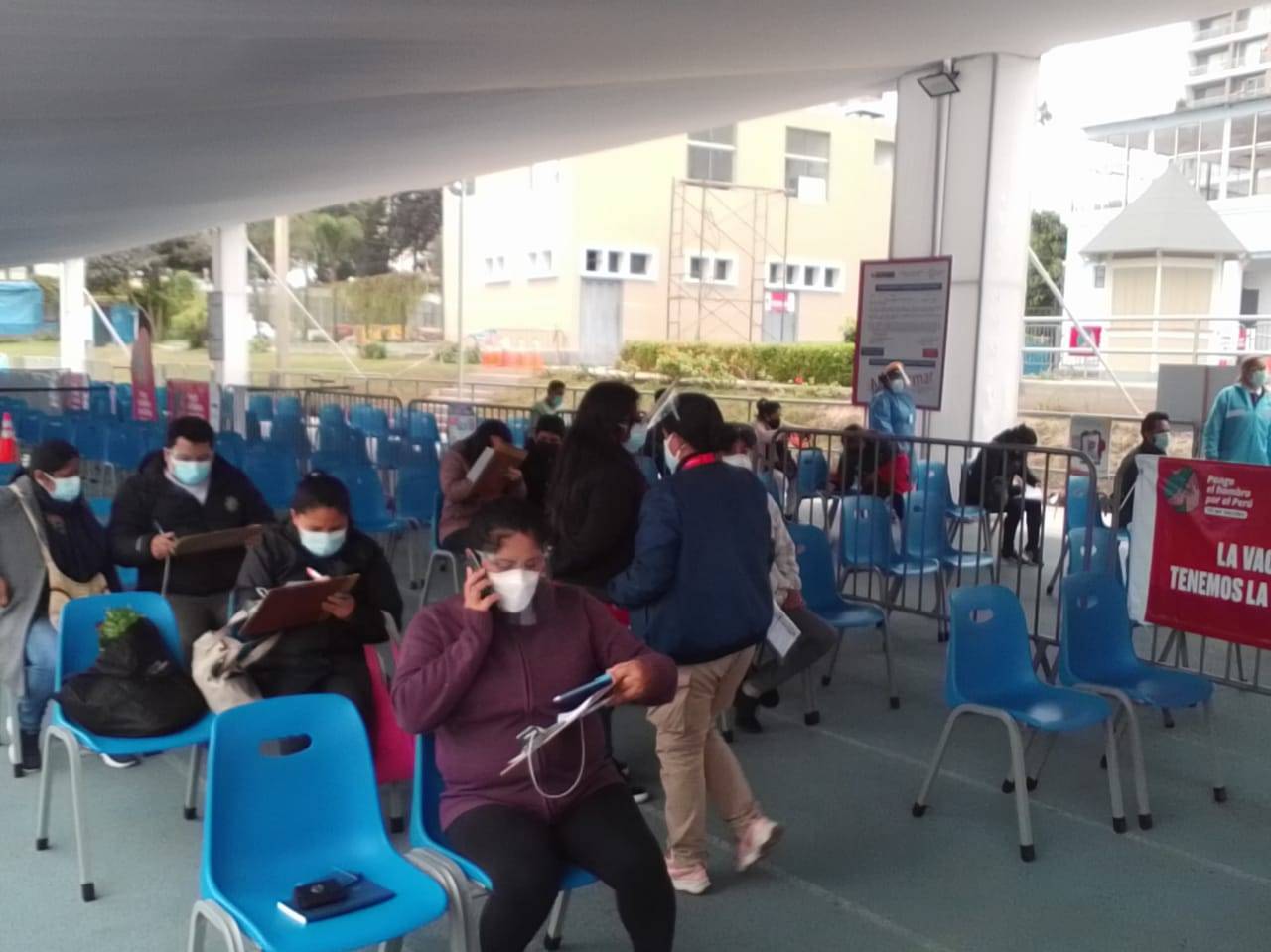 El Ministerio de Salud (Minsa) reporta mediante sus redes sociales que la afluencia de ciudadanos en Arequipa incrementa con el transcurrir de las horas. Insta a los que recibieron su primera dosis a retornar por la segunda.