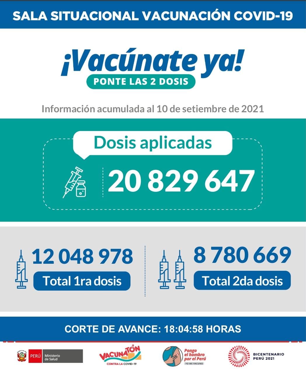 Hasta la fecha, el Ministerio de Salud ya aplicó un total de 20 829 647 dosis contra la COVID-19.