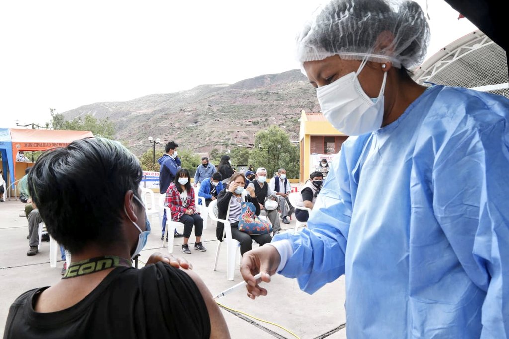 Desde las 8 a. m., las brigadas de vacunación están en la explanada del centro de salud Clas de Urubamba, Cusco, para aplicar primeras, segundas y terceras dosis a toda la población mayor de 12 años.