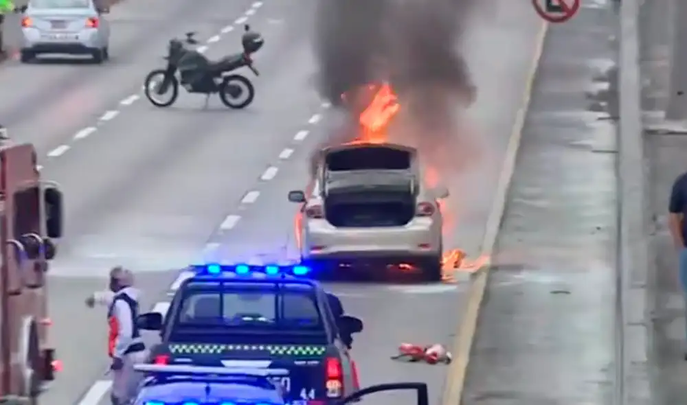 Según información de América Noticias, el siniestro inició alrededor de las 6 a. m. en el carril con sentido de sur a norte por una aparente falla mecánica en el motor del automóvil. Solo un hombre, quien salió ileso, se encontraba a bordo de la unidad.