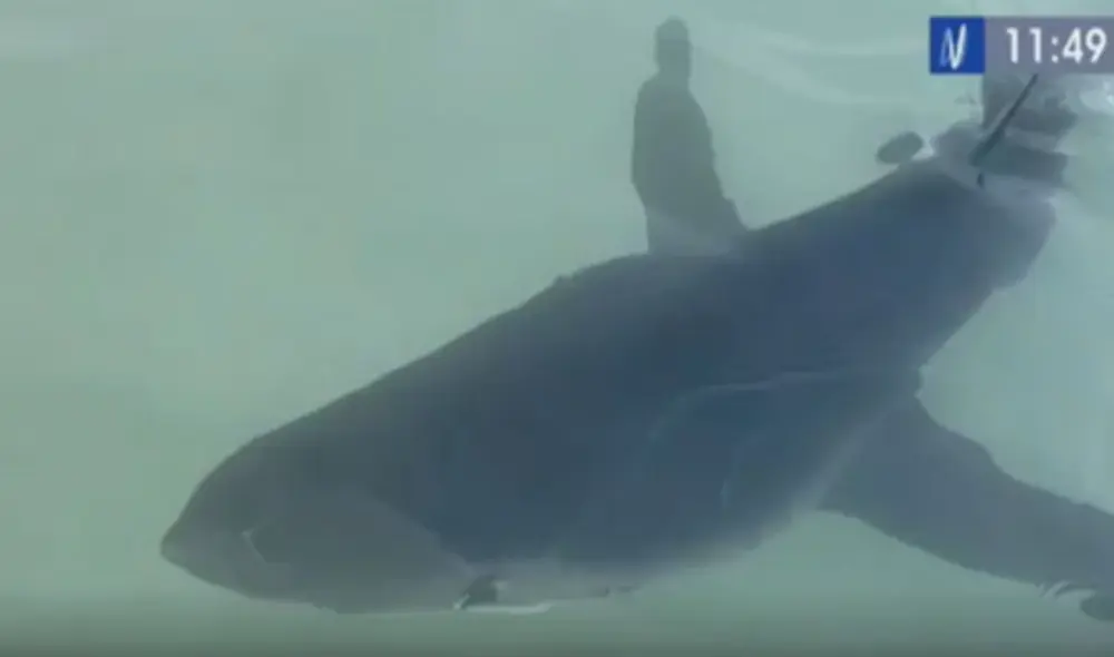 Piden a ciudadanos que sean muy cuidadosos y eviten entrar a la zona. Alcalde mencionó que el tiburón habría sido herido.