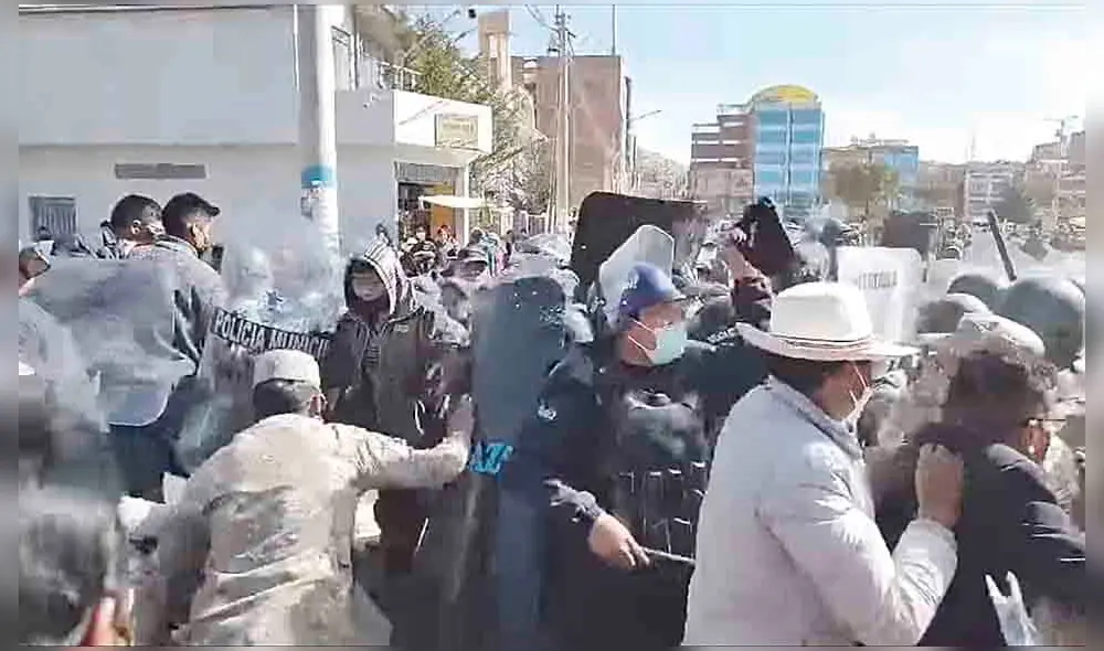 La tensión se agudizó cuando los militares, provistos de escudos, realizaron un cordón humano para impedir el paso de las autoridades de la municipalidad, pese a la exhortación de que se retiren. Ante la negativa, los serenos con apoyo de los vecinos desalojaron a empellones a los militares.