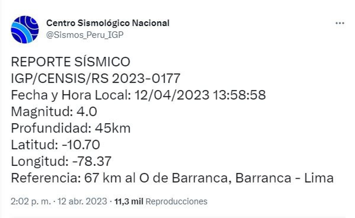 Últimos sismos en Perú hoy miércoles 12 de abril 2023