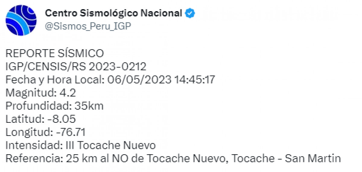 Si quieres revisar el reporte detallado sobre los movimientos telúricos ocurridos en nuestro territorio nacional, debes ingresar a la web oficial del Instituto Geofísico del Perú (IGP) o acceder a su cuenta de Twitter donde también publican la información.