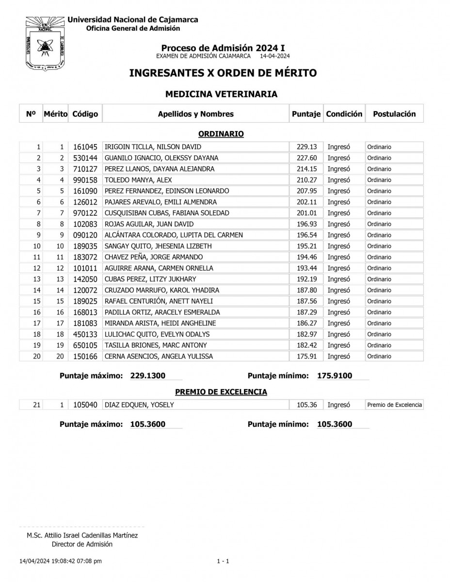 Lista de resultados oficiales de la UNC 2024 - I
