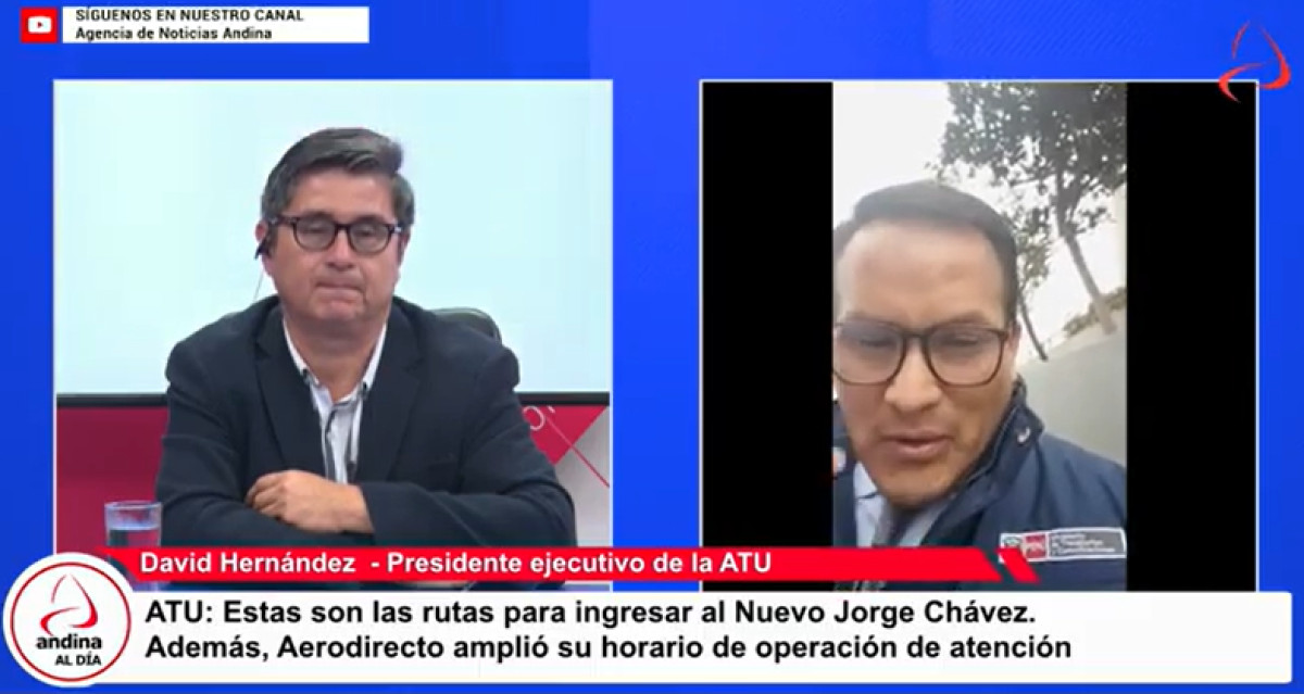 El presidente ejecutivo de la Autoridad de Transporte Urbano (ATU), David Hernández, afirmó en Andina que se ejecutará la próxima puesta en marcha del servicio de buses Aerodirecto en horarios de madrugada, destinado a conectar múltiples puntos de la ciudad con el nuevo aeropuerto Jorge Chávez.