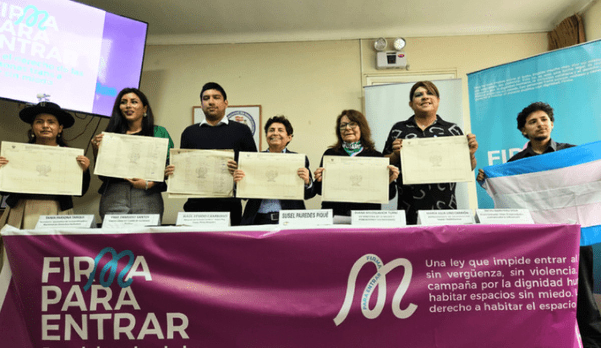 Ante la promulgación de la Ley N° 32331, promovida por el congresista Alejandro Muñante, distintas organizaciones del colectivo han lanzado una campaña nacional denominada “Firma para entrar: por el derecho de las personas trans a vivir sin miedo”, con el objetivo de presentar una demanda colectiva ante el Tribunal Constitucional para frenar la denominada Ley de Baños.