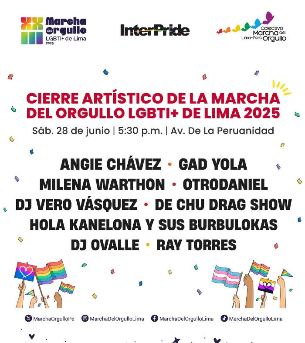 La Marcha del Orgullo LGTBIQ+ de este 2025 tiene planeado culminar con un cierre artístico que inició desde las 5:30 p.m. en la av. De La Peruanidad.