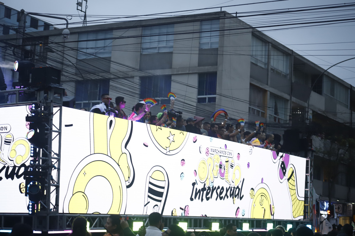 Como se tenía planificado, la Marcha del Orgullo 2025 continúa llevándose a cabo con cientos de personas, carros alegórcios y danzas.