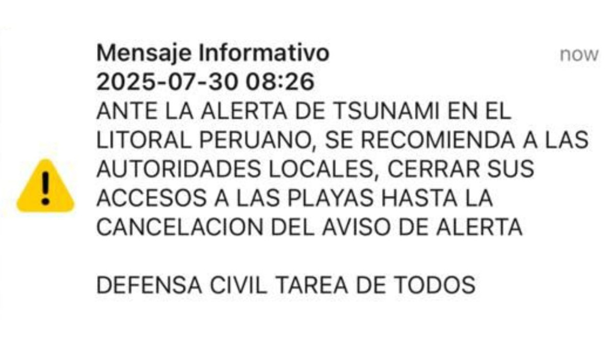 El Instituto Nacional de Defensa Civil (Indeci) indicó mediante la alarma Sismate, la cancelación de la alerta de tsunami en todo el Perú.