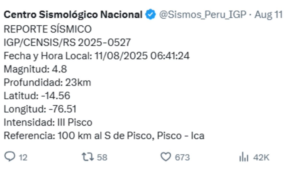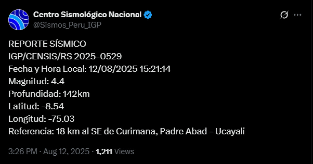 Temblor en Perú HOY, martes 12 de agosto 2025: ¿a qué hora y dónde ocurrió el último sismo vía IGP?